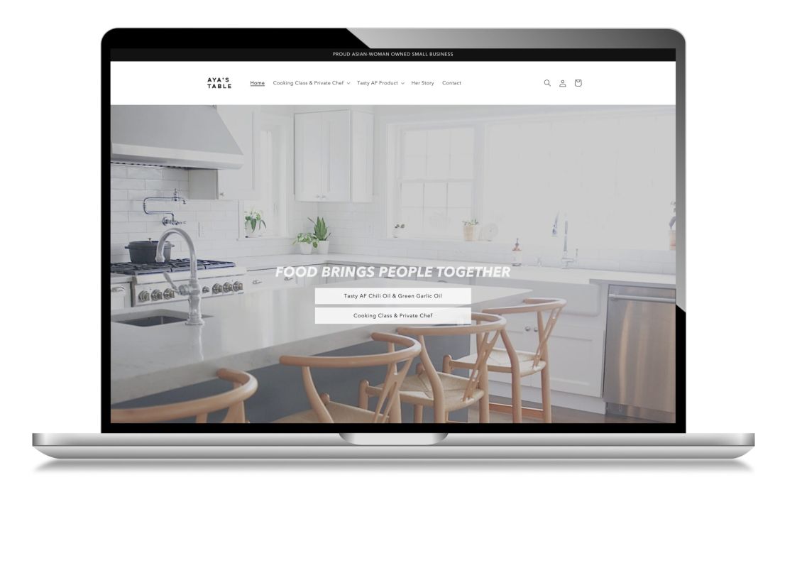 Aya’s Table is a small, woman- and minority-owned business selling specialty food products, namely hot chili and green garlic oils, and offering private group cooking classes in person and online. Aya wanted to migrate the website from Wix to Shopify to better accommodate the long-term needs of her business regarding product sales and fulfillment. In the design process, we reorganized and updated the website, including new product photography, search engine optimization, and recommendations to help reach new customers for Aya’s Tasty AF branded products.