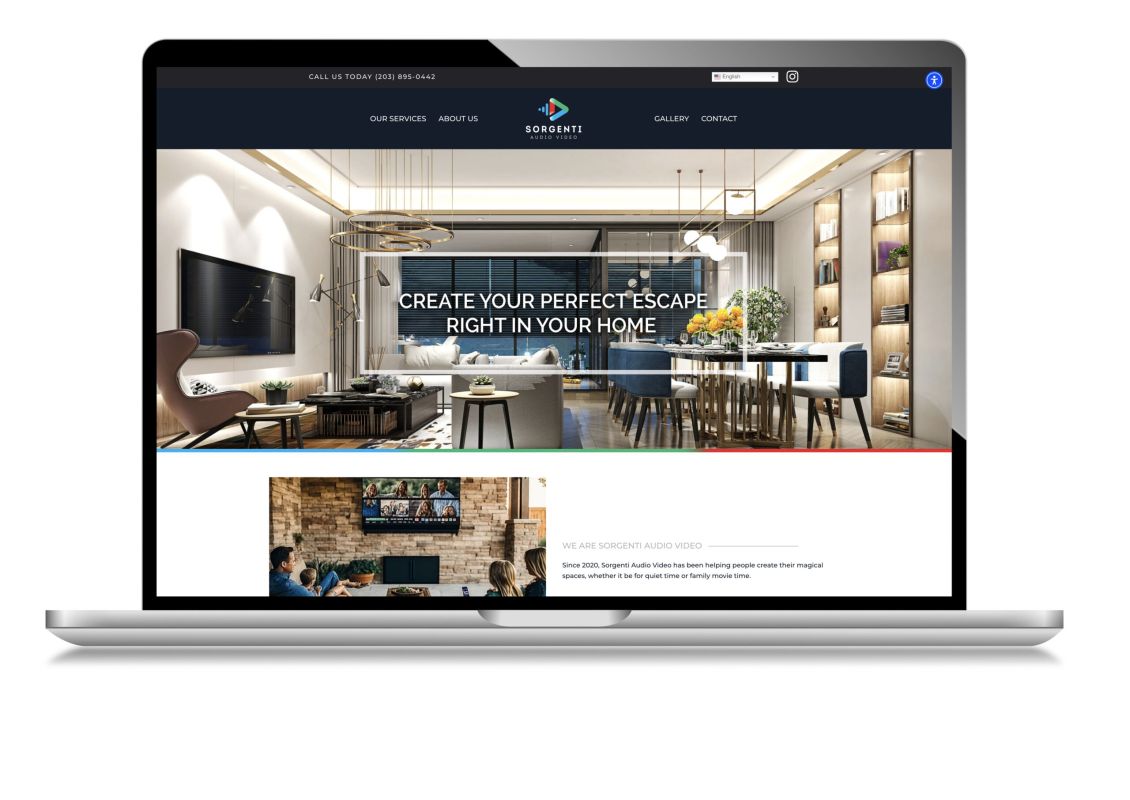 Sorgenti AV creates audio-video environments that provide a cozy and comforting escape. The prior website design and content did not adequately represent the range of the firm’s services, particularly to attract the high-end AV residential or commercial buyer. It also did not encourage engagement with the visitor, such as facilitating questions and answers, offering a contact form to request a consultation or quote, providing customer reviews and project photos, etc. We developed the new website with an upscale design and high-tech feel, showcasing the depth of Sorgenti’s design and installation services as well as customized attention to detail.