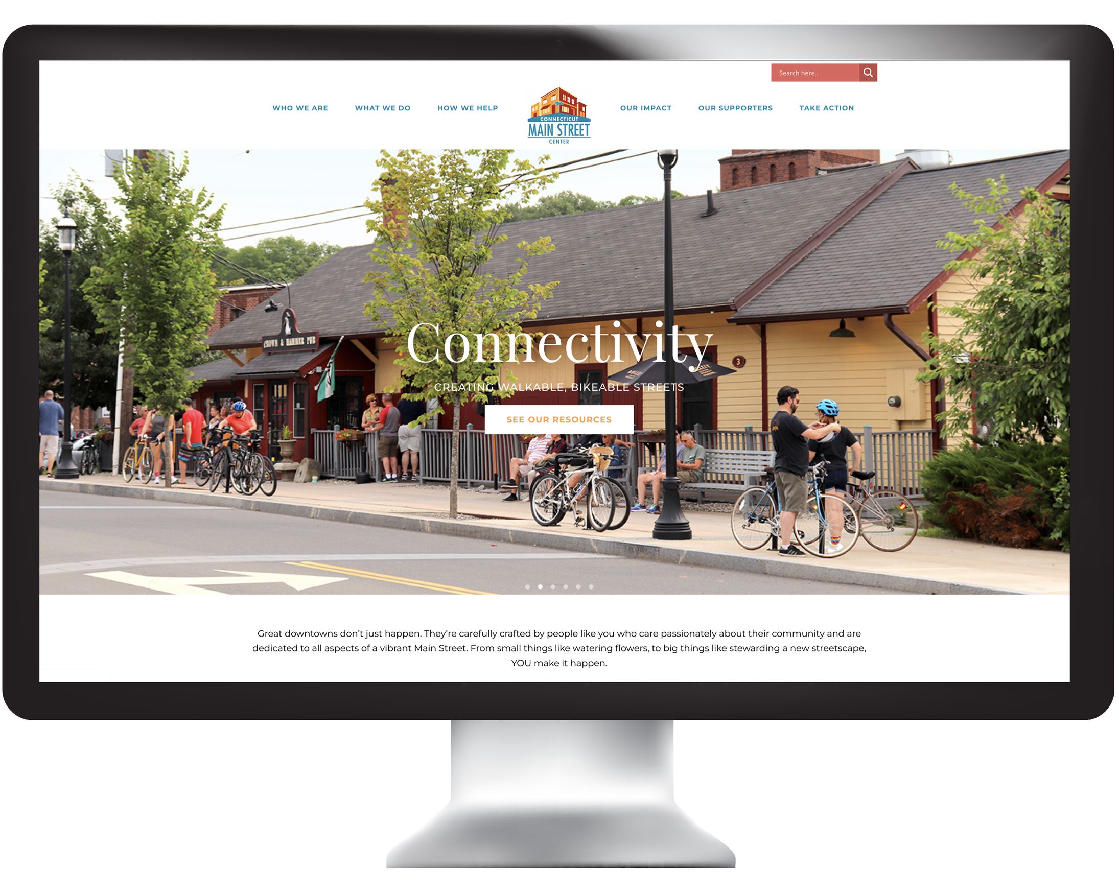 When we redesigned Connecticut Main Street Center’s new logo and website, the goal was to position the consulting organization as accessible and energetic in how it works to promote Connecticut’s downtowns.
