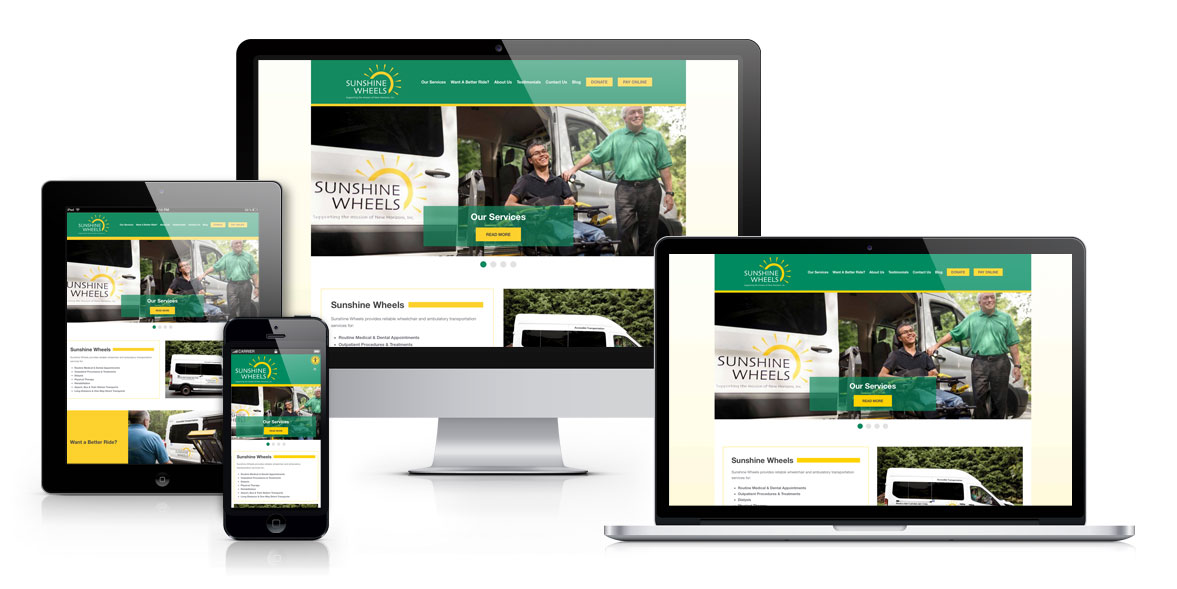When New Horizons started a venture called Sunshine Wheels to provide reliable and accessible transportation, they turned to us to get the creative wheels turning on logo design, vehicle graphics, literature, and a website (www.SunshineWheels.org) to launch the new service.